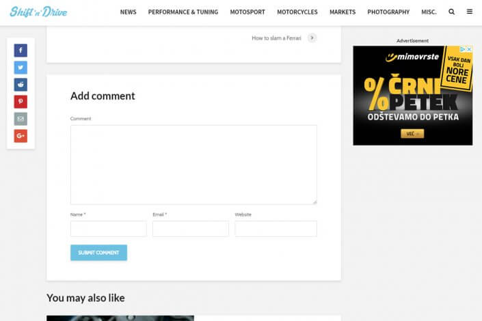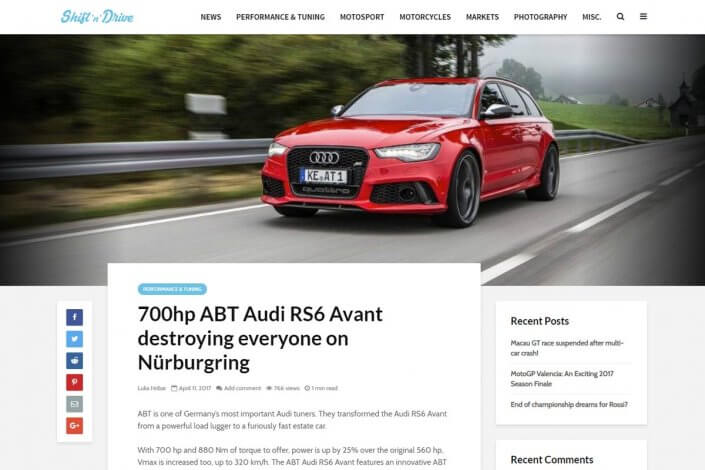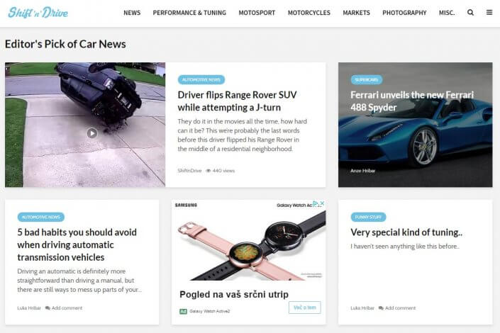 v zasnovo avtomoto portala Shiftndrive.com, ki cilja na angleško govoreče uporabnike, smo vključili vse segmente uporabniške izkušnje z znamko. Portal pod eno streho združuje strast do predelav, dirkanja in druženja. Ekipa Shit’n’Drive pokriva vsa večja avtomobilistična področja in vam prinaša dnevne novice, včasih tudi s kančkom satire.